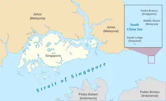 Pedra Branca (também chamada Pulau Batu Puteh) tem uma área de 3300 m2 e, durante a maré baixa, seu maior comprimento emergido é de 137 m para uma área de 8560 m2.