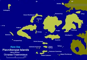 As ilhas Plavnikovyye não devem ser confundidas com a ilha Plavnikovyy (Ostrov Plavnikovyy), ao largo da costa ocidental de Severnaya Zemlya, também no mar de Kara.