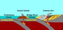 As Ilhas Insulares eram uma cadeia gigante de ilhas vulcânicas ativas em algum lugar no Oceano Pacífico durante o período Cretáceo que montou na parte superior uma microplaca chamada de Placa insular, começando há cerca de 130 milhões de anos. As Ilhas insulares estavam cercadas por dois pré-históricos oceanos, o Oceano Panthalassa para o oeste e Bridge River Ocean para o leste. Cerca de 115 milhões de anos atrás, essas ilhas colidiram com o continente norte-americano, fundindo-se na Placa norte-americana e fechando o Bridge River Ocean durante o período do Cretáceo Médio.