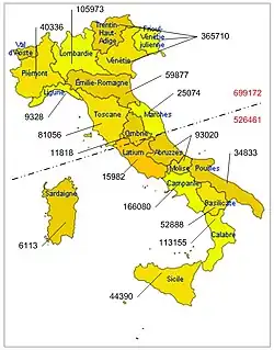 O censo brasileiro de 1920 contabilizou 558.405 italianos residentes no Brasil, dos quais 71% residiam no estado de São Paulo. [3][4] Em 1920, os onze municípios paulistas com mais pessoas nascidas na Itália eram: