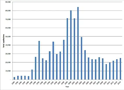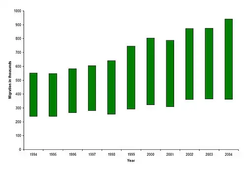 - ↑ Home Office Statistical Bulletin: Asylum Statistics United Kingdom 2003 Arquivado em 3 de outubro de 2008, no Wayback Machine., novembro de 2004, acessado em 27 de maio de 2007