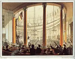 Uma Confederação Alemã foi criada em 1815. Esta organização do tratado para a defesa dos territórios alemães carecia, na visão do movimento nacional, de um governo e de um parlamento. Mas foi geralmente reconhecido pelas potências alemãs e estrangeiras – para estabelecer um Estado nacional, era mais fácil apresentá-lo como a continuação da Confederação. Este foi, na verdade, o caminho que a Assembleia Nacional tomou, embora originalmente se considerasse um órgão revolucionário. [7]