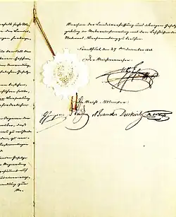 - ↑ Ernst Rudolf Huber: Deutsche Verfassungsgeschichte seit 1789. Band II: Der Kampf um Einheit und Freiheit 1830 bis 1850. 3rd edition, Kohlhammer Verlag, Stuttgart [et al.] 1988, p. 638.
