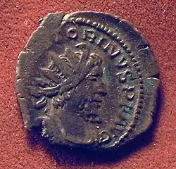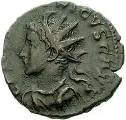 [a] ^ Este estado jamais se auto-denominou ou foi chamado pelos vizinhos de Imperium Galliarum em documentos oficiais, moedas ou inscrições conhecidos. O nome vê de uma frase na obra "Galliarum accepit imperium", de Eutrópio, "[ele assumiu o] comando das províncias gálicas".[15] Mas é claro que os título e estruturas administrativas ali seguiram os modelos romanos.[16]