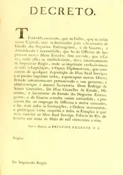 - ↑ Impressão Régia Arquivo Nacional. Acesso em 31 de dezembro de 2014