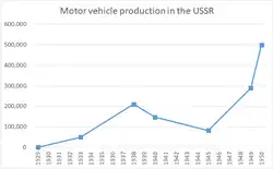 Em 1937, a União Soviética produziu mais de 200.000 veículos, principalmente caminhões, colocando o país em segundo lugar mundialmente pela produção de caminhões.[1]