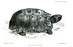 - ↑ Turtle Taxonomy Working Group [Rhodin, A.G.J., Iverson, J.B., Bour, R. Fritz, U., Georges, A., Shaffer, H.B., and van Dijk, P.P.]. 2017. Turtles of the World: Annotated Checklist and Atlas of Taxonomy, Synonymy, Distribution, and Conservation Status (8th Ed.). In: Rhodin, A.G.J., Iverson, J.B., van Dijk, P.P., Saumure, R.A., Buhlmann, K.A., Pritchard, P.C.H., and Mittermeier, R.A. (Eds.). Conservation Biology of Freshwater Turtles and Tortoises: A Compilation Project of the IUCN/SSC Tortoise and Freshwater Turtle Specialist Group. Chelonian Research Monographs 7:1–292. doi:10.3854/crm.7.checklist.atlas.v8.2017