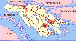 - ↑ Harlén, Hans; Eivy Harlén (2003). «Ingarö». Sverige från A till Ö [A Suécia de A a Ö]. Geografisk-historisk uppslagsbok (em sueco). Estocolmo: Kommentus. p. 189. 583 páginas. ISBN 91-7345-139-8