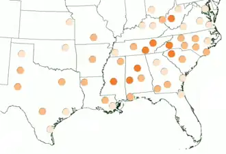 Apesar do lento declínio do sotaque sulista moderno,[16] ainda está documentado como difundido a partir de 2006 Atlas do inglês norte-americano. Especificamente, o Atlas documenta definitivamente um sotaque sulista em Virgínia, Carolina Do Norte, Carolina Do Sul (embora não em Charleston), Geórgia (embora não de forma consistente em Atlanta), Alabama, Mississippi, Tennessee, Kentucky, Arkansas, Luisiana (quando co - ocorre com Cajun e Sotaques de Nova Orleães), Sul Virgínia Ocidental, o Área Springfield do Sul Missouri, o Área Jacksonville do Norte Florida, e muito de Texas.[6] Outras bolsas do século 21 incluem ainda o sul e o leste Oklahoma, Sul Maryland, Centro-Oeste da Virgínia, outras partes do Sul do Missouri e Norte da Florida,[17] e Sudeste Novo México.[18] O Atlas documentos a South Midland accent como compartilhando características - chave com o sotaque sulista, embora em uma extensão mais fraca; essas características se estendem por todo o Texas, Oklahoma, e West Virginia, bem como por todo o leste e centro Kansas, Sul do Missouri, Sul Indiana, Sul Ohio, e possivelmente do Sul Illinois.[6][17] Sotaques afro-americanos os Estados Unidos têm muitos pontos em comum com sotaques do Sul devido aos fortes laços históricos de Afro-Americanos para o sul.