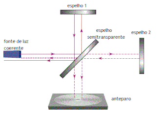 Interferômetro de Michelson é o tipo mais fundamental de interferômetro de dois feixes. A utilização consiste em dividir um feixe de luz em dois caminhos (diferentes comprimentos de onda ou materiais), refleti-los de volta e recombiná-los em um anteparo, produzindo um padrão de interferência. O instrumento pode ser usado também para medir comprimentos de onda com grande precisão.