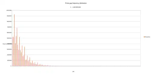 - ↑ «TABLES OF PRIME GAPS». Consultado em 9 de janeiro de 2017. Cópia arquivada em 20 de junho de 2016