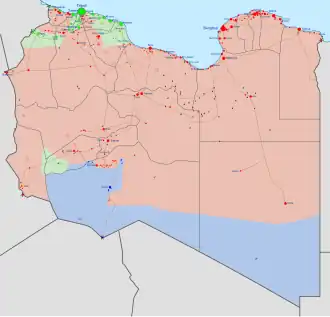 ![]() ![]() Mapas mostrando a evolução territorial das forças militares na Guerra Civil Líbia antes e depois da intervenção turca: