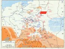 Apesar de uma vitória táctica polaca a 28 de Setembro, na Batalha de Szack, o resultado final do conflito nunca esteve em dúvida.[36] Milícias de voluntários civis e unidades reorganizadas, recuaram e ficaram cercadas na capital polaca, Varsóvia, até 28 de Setembro. A Fortaleza de Modlin, a norte de Varsóvia, rendeu-se no dia seguinte após intensos dezesseis dias de batalha. Em 1º de Outubro, as tropas soviéticas forçaram as forças polacas a recuar para a floresta de Wytyczno, onde se deu um dos últimos confrontos directos da campanha.[37]