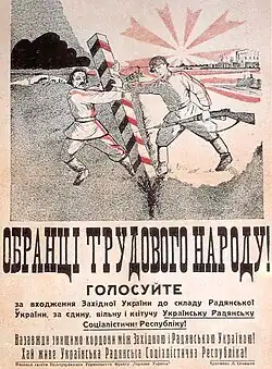 Os soviéticos rapidamente introduziram políticas de Sovietização na Bielorrússia Ocidental e na Ucrânia Ocidental, incluindo a coletivização obrigatória de toda a região. No processo, eles impiedosamente eliminaram partidos políticos e associações públicas e os seus líderes foram presos e executados como "inimigos do povo".[50] As autoridades também reprimiram a Organização Nacionalista Ucraniana de teor antipolaco que tinha resistido ativamente ao regime polaco desde os anos 1920, apesar da sua mudança de chefia, os nacionalistas ucranianos continuavam a apontar para um Estado ucraniano independente unificado.[57][58] A unificações de 1939 foi um acontecimento decisivo na história da Ucrânia e da Bielorrússia, porque foram criadas duas repúblicas independentes que se tornariam estados de direito a partir de 1991.[59]