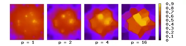 - ↑ a b Shepard, Donald (1968). «A two-dimensional interpolation function for irregularly-spaced data». Proceedings of the 1968 ACM National Conference. pp. 517–524. doi:10.1145/800186.810616