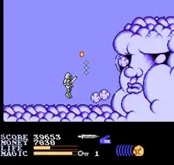A animação da águia (o "Rei Águia") que transporta Kuros para o Elemental do Vento foi um dos primeiros gráficos de Ste Pickford que ele desenhou para o NES. Foi feito no Deluxe Paint para o Amiga com esboços feitos pelo mouse - sem assistência de tablets gráficos ou outros scanners. Ele pegou desenhos de águias de um livro sobre animais em movimento de Eadweard Muybridge. Pickford queria mostrar as possíveis capacidades gráficas do NES; ele disse: "Eu queria fazer algo 'chamativo' no início do jogo, tentando mostrar minhas incríveis habilidades de arte gráfica no NES bastante primitivo. Estávamos trabalhando em jogos Amiga e ST ao mesmo tempo, então estávamos sempre tentando empurrar o NES com gráficos maiores e melhores, desde o início do nosso trabalho na máquina." A águia consistia em apenas três cores e entre 11 e 17 sprites por quadro de animação. Havia uma versão menor da mesma águia, que era usada como um inimigo regular naquele nível.[7]