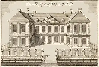 A duquesa mandou construir um assentamento de diaristas para os trabalhadores da fazenda do castelo, a cerca de um quilômetro ao norte do complexo do palácio, de onde emergiu hoje o distrito de Vechelade.
