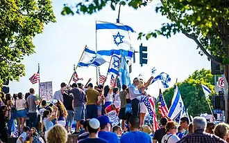 No verão do ano 2006, durante a Segunda Guerra do Líbano, o consulado israelita em Los Angeles organizou uma manifestação pró-israelita. Enquanto a comunidade e seus dirigentes, bem como centenas de membros comunitários assistiram ao ato, só um punhado de israelitas-americanos participaram. Os organizadores estavam decepcionados ao ver a baixa participação dos mais de 200,000 israelitas-americanos que residiam naquela área, tendo em conta que os israelitas-americanos estavam a seguir de perto os acontecimentos que então tinham lugar em Israel, e que alguns deles inclusive estavam a liderar iniciativas de apoio. Como comunidade, não estavam organizados ou filiados com nenhuma instituição que fosse capaz dos unir e os liderar.