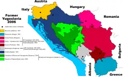 Em 1990, os comunistas perderam o poder para partidos separatistas nas primeiras eleições multipartidárias realizadas em todo o país, exceto na Sérvia e Montenegro, onde foram vencidas por Milošević e seus aliados. A retórica nacionalista de todos os lados tornou-se cada vez mais acalorada. Em 1991, uma república após a outra proclamou a independência (apenas Sérvia e Montenegro permaneceram federados), mas o status das minorias sérvias fora da Sérvia permaneceu sem solução. Após uma série de incidentes interétnicos, as Guerras Iugoslavas ocorreram, primeiro na Croácia e depois, mais severamente, na multiétnica Bósnia e Herzegovina; as guerras deixaram danos econômicos e políticos de longo prazo na região. [3]