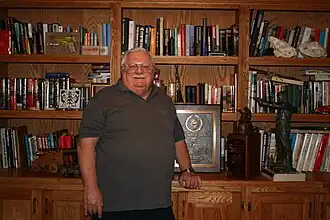 ![]() Jones com as premiações: "Pistolsmith of the year"; "Handgun Hunters Hall of Fame" e "Outstanding American Handgunner". | |