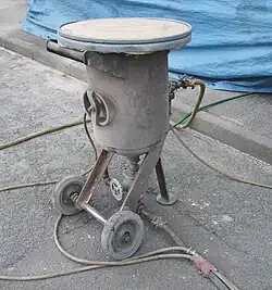 Dentro de um pavilhão de pintura, a operação é executada numa cabina com sistemas de ventilação e tratamento de poeiras e reciclagem de abrasivos. Quando se pretende executar esta operação numa estrutura ao ar livre (Ponte) ela terá que ser completamente envolvida em lona ou outro material similar de modo a impedir a contaminação do ar e dos solos com os resíduos da operação.