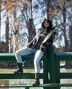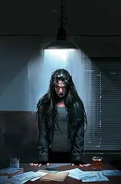 ![]() Jessica Jones em sua aparição nas histórias em quadrinhos no começo da década de 2000. | |