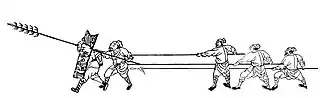 - 2 homens armados com lanças de pontas múltiplas (lang xian shou 狼筅手)