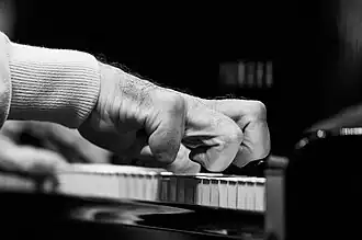 "Ah, eu tive um acidente jogando futebol, uma pedra lesionou o meu nervo ulnar. Eu fui perdendo o movimento das mãos aos poucos. Aí fiz uma operação para a transposição do nervo ulnar. Vinte e cinco anos, 24. Comecei a tocar com dedeiras de aço. Aí, quantos concertos eu dei, tinha sangue nas teclas. Eu me entusiasmava demais, forçava a dedeira de aço até que... Aí já tinha me separado dela. Até que eu toco em Nova York e tenho uma crítica ruim. Eu falo para o meu empresário: “Se o New York Times sempre me elogiou tanto, e criticou, ele está certo. Eu vou voltar para o Brasil e nunca mais vou olhar para um piano”."