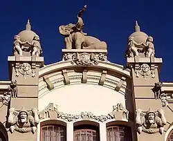 A produção de seu atelier se caracteriza por um ecletismo de traços vigorosos e originais, ainda que mostre frequentemente alguma rigidez e um acabamento rústico nas figuras, mas sempre com uma rica inventividade para os ornamentos, num estilo que se distancia dos rígidos cânones clássicos e se aproxima do gosto e entendimento do público comum e, nos prédios públicos, amiúde serve de ilustração para um programa narrativo simbólico de caráter positivista, que era uma forte tendência na época.[1]