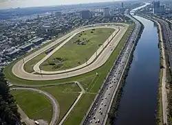 Vista aérea do Jockey Club, com a Marginal Pinheiros ao lado direito da imagem
