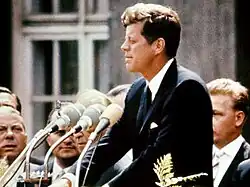 14. a b Kennedy, John F. (15 de julho de 1960). «Address of Senator John F. Kennedy Accepting the Democratic Party Nomination for the Presidency of the United States». John F. Kennedy Library. Consultado em 29 de maio de 2012