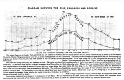 Pode-se dizer que o jornalismo de dados, teve sua primeira publicação em 1821, pelo jornal The Guardian, onde eles traziam uma relação completa entre o custos e a capacidade de alunos das escolas de Manchester.[6] Em 1849 o jornal americano The New York's Tribune trazia a notícia sobre uma epidemia de cólera que atingira a cidade de Nova Iorque naquele ano. O gráfico mostrava a proporção entre as mortes causada pela doença em relação ao número de óbitos.[7] Alguns anos mais tarde, em 1858, foi publicado o livro "Notes on Nursing" pela britânica Florence Nightingale. Ela era enfermeira e em seu livro apresentava gráficos para demonstrar a relevância de medidas sanitárias no salvamento de feridos em guerra.[6]