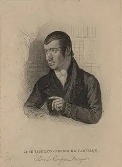 - ↑ a b c d e «Memórias da vida de José Liberato Freire de Carvalho». Lisboa: Typographia de José Baptista Morando, 1855. Books.google.pt