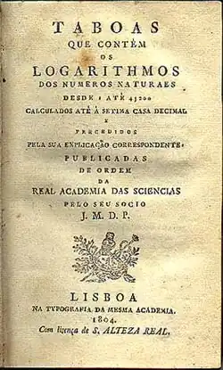 - Tábuas de logaritmos calculadas até à sétima decimal