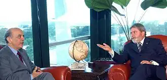 José Serra Chirico,[2][3] GOMM; (São Paulo, 19 de março de 1942) é um economista, professor e político brasileiro filiado ao Partido da Social Democracia Brasileira (PSDB).[4] Foi ministro das Relações Exteriores, da Saúde e do Planejamento durante os governos Fernando Henrique Cardoso e Michel Temer.[5] Por São Paulo, foi governador e deputado federal durante dois mandatos, senador, além de prefeito da capital homônima.