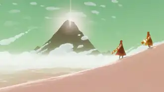 Journey é um jogo eletrônico independente desenvolvido pela Thatgamecompany para o PlayStation 3, PlayStation 4 e Microsoft Windows.[2] Foi lançado em 13 de março de 2012 na PlayStation Network. Em Journey, o jogador controla uma figura encapuzada a vagar por um vasto deserto, viajando rumo a uma grande montanha ao longe. Há a possibilidade de encontrar outro jogador durante a exploração dos cenários e com ele formar uma parceria de auxílio mútuo em meio à jornada, porém, não há comunicação via fala ou texto e não é fornecida qualquer informação a respeito do outro usuário. A única forma de contato possível entre os dois se dá por meio de uma nota musical que o personagem é capaz de emitir. Esse som permite também que peças de tecido vermelho distribuídas pelas seções do jogo possam ser manipuladas, afetando os ambientes e permitindo progressão na história. A figura encapuzada usa um cachecol que pode ser carregado quando aproximado às peças de tecido, dando a ela a capacidade de executar voos temporários.