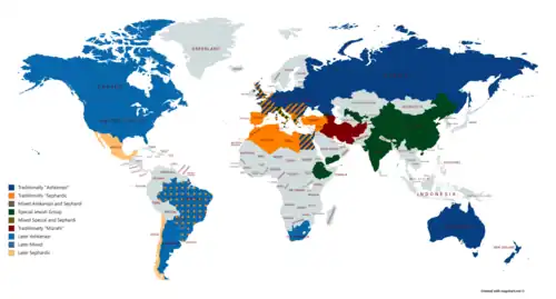 A migração judaica para os Estados Unidos aumentou drasticamente no início da década de 1880, em consequência da perseguição e das dificuldades económicas em algumas regiões da Europa Oriental. A maior parte desses novos imigrantes eram judeus asquenazes de língua iídiche, a maioria proveniente de comunidades pobres da diáspora do Império Russo e do Pálio da Colonização, localizado na atual Polónia, Lituânia, Bielorrússia, Ucrânia e Moldávia. Durante o mesmo período, um grande número de judeus asquenazes chegou também da Galiza, na altura a região mais pobre do Império Austro-Húngaro, com uma forte população judaica urbana, expulsa principalmente por razões económicas. Muitos judeus emigraram também da Romênia. Mais de 2.000.000 de judeus desembarcaram entre o final do século XIX e 1924, quando a Lei da Imigração de 1924 restringiu a imigração. A maioria estabeleceu-se na área metropolitana de Nova Iorque, criando as maiores concentrações mundiais de população judaica. No ano de 1915, a circulação dos jornais diários escritos em iídiche era de meio milhão só na cidade de Nova Iorque e 600.000 a nível nacional. Além disso, outros milhares assinavam os numerosos jornais semanais e as muitas revistas produzidas em iídiche.[14]
