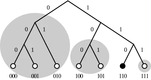 Considere a rede simples à direita. O tamanho da rede é 2^3 ou oito chaves e nós no máximo. Existem sete nós participando; os pequenos círculos na parte inferior. O nó em consideração é o nó seis (binário 110) em preto. Existem três k-buckets para cada nó nesta rede. Os nós zero, um e dois (binário 000, 001 e 010) são candidatos para o k-bucket mais distante. O nó três (binário 011, não mostrado) não está participando da rede. No k-bucket do meio, os nós quatro e cinco (binário 100 e 101) são colocados. Finalmente, o terceiro k-bucket pode conter apenas o nó sete (binário 111). Cada um dos três k-buckets está fechado em um círculo cinza. Se o tamanho do k-bucket fosse dois, então o 2-bucket mais distante poderia conter apenas dois dos três nós. Por exemplo, se o nó seis tem o nó um e dois no 2-bucket mais distante, ele teria que solicitar uma busca de ID de nó a esses nós para encontrar a localização (endereço ip) do nó zero. Cada nó conhece bem sua vizinhança e tem contato com alguns nós distantes que podem ajudar a localizar outros nós distantes.