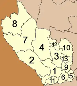 A província está subdividida em 13 distritos (amphoes). Os distritos estão por sua vez divididos em 98 comunas (tambons) e estas em 887 povoados (moobans).