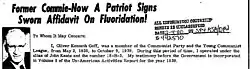 - Associated Press (AP), "Communism Foe Rev. Goff Dies". Greeley Tribune. 13 April, 1972. Retrieved 16 January 2013[2]