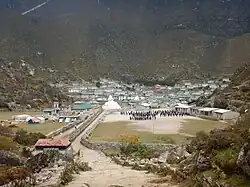 A aldeia está situada a uma altitude de 3.970 metros acima do nível do mar, e perto do Monte Khumbila.[3] Esta aldeia tem comunicações modernas, como internet e telefones fixos e móveis, assim como a escola "Hillary" fundada por Edmund Hillary em 1961, oito anos depois da sua conquista do monte Evereste, que fornece educação para mais de 350 crianças.[3]