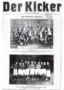 - ↑ a b c «Phänomen der Medienbranche: Der «Kicker» feiert 100. Geburtstag». www.rnz.de (em alemão). Consultado em 1 de novembro de 2021