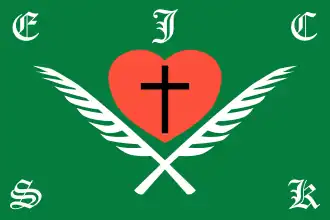 ![]() Bandeira da E.J.C.S.K. (detalhes podem variar de congregação em congregação) | |