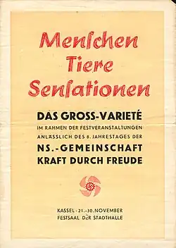 Em 1937 a KdF tinha mais de 4.400 empregados e 106.000 voluntários responsáveis por várias áreas como esporte, educação e turismo. Com o início da Segunda Guerra Mundial em 1939, a KdF encerrou quase todas as operações.
