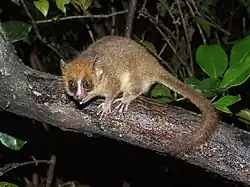 | Uma amostra da diversidade lemuriforme;[a] 8 gêneros biológicos são representados (de cima, da esquerda para a direita): Lemur, Propithecus, Daubentonia, Varecia, Microcebus, Nycticebus, Loris, Otolemur. | |