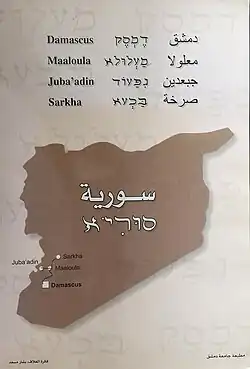 A língua neoaramaico ocidental é falada principalmente pelos moradores de Maalula (علولة) e Jubb' Adin (جبعدين), no Antilíbano (atual Síria), cerca de 60 km a nordeste de Damasco; era também falado em Bakh'a (بخعة), na mesma região, mas esta foi destruída na guerra civil.[22] A continuação deste pequeno grupo de aramaico em um domínio quase total de língua árabe é em parte devido ao relativo isolamento das aldeias ao redor das montanhas[23] e da união entre as suas comunidades. Hoje ele é um idioma ameaçado de extinção devido aos conflitos religiosos presentes na região.[24]