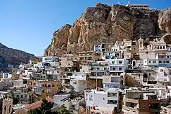 Maaloula é famosa por suas casas de pedra azul, que dizem ter sido pintadas dessa cor em homenagem à Virgem Maria.
