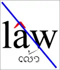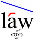 | alto nível com fechamento glotal (que cai um pouco no final[5]) (C1-3) | 44ʔ ou ˦˦ʔ | de queda alta, glotalizado (C1-3) | 53ʔ ou ˥˧ʔ | 44ʔ ou ˦˦ʔ | (nenhum) | /law˦˦ʔ/ | Escrita Lana | เหล้า | licor, bebida alcoólica |