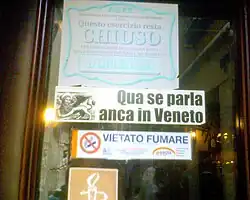 Placa de rua onde se lê "Aqui também falamos vêneto"