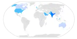 - Inglês (Inglês britânico com ortografia da Universidade de Oxford e em alfabeto latino - British English with Oxford spelling)) – língua franca moderna e majoritária ou oficial no Reino Unido da Grã-Bretanha e Irlanda do Norte, nos Estados Unidos da América e outros 56 países e 31 territórios não-soberanos, especialmente estes dentro da Comunidade das Nações.